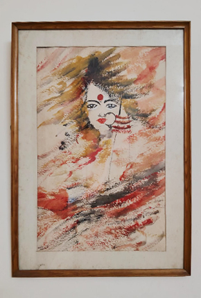 Ms K. Chakrabarti painted this beautiful picture on oil paper using oil paint, about 10 to 15 years back. The 3D effect of the painting with the mountains in the backdrop, provides a special effect. This idea came to her after she had visited Darjeeling and witnessed the beautiful houses of the Llama. She expressed her memories of the hill station through this painting.