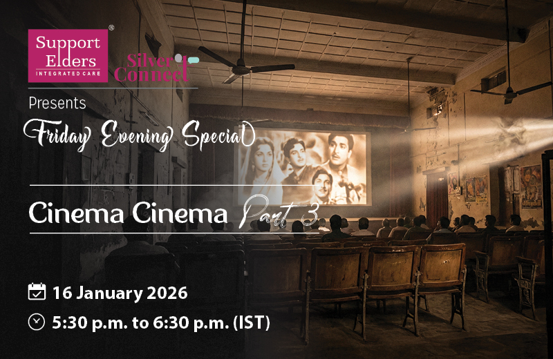 Seniors share a deep and enduring bond with audio-visual media, especially films, which have long been a source of entertainment, memory, and shared cultural experience. Recognising this love for cinema and storytelling, we curated a Friday Evening Special in which Saptarshi Ray Bardhan, storyteller and film enthusiast, took us through the chequered history of Kolkata’s movie theatres. The talk sparked warm reminiscences, with members recalling the cinema halls they once frequented and expressing nostalgia for the single-theatre experience. At the same time, some acknowledged the convenience of today’s world, where films are easily accessible at home and on mobile phones. The session ended with members eagerly looking forward to the next part of this illuminating chat.