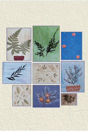 This marvellous technique of artwork by our member Ms R. Pakrasi, lets us have a peek into her hobby of collecting tree leaves and petals which she dries and preserves to use in her artwork. The petals and leaves used in these pictures were collected in the course of her morning walk, during one of her visits abroad to her son’s place. The white canvas has been aesthetically transformed by her fantastic nature craft of affixing the dry leaves and petals on it.